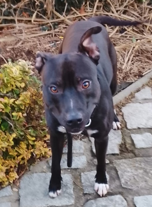 Máme tu dalšího křížence staforda, tentokrát 3-letého Danta. Dant k nám doputoval až z Rapotína a je hodný, přátelský, ale má spoustu nevybité energie, takže je potřeba pevnou ruku a důslednost, aby se pejsek zklidnil a svou energii vybil správným způsobem. Snad se najde zkušený pejskař, který mu nabídne to správné místečko a výchovu. Už teď je Dant skvělý parťák.